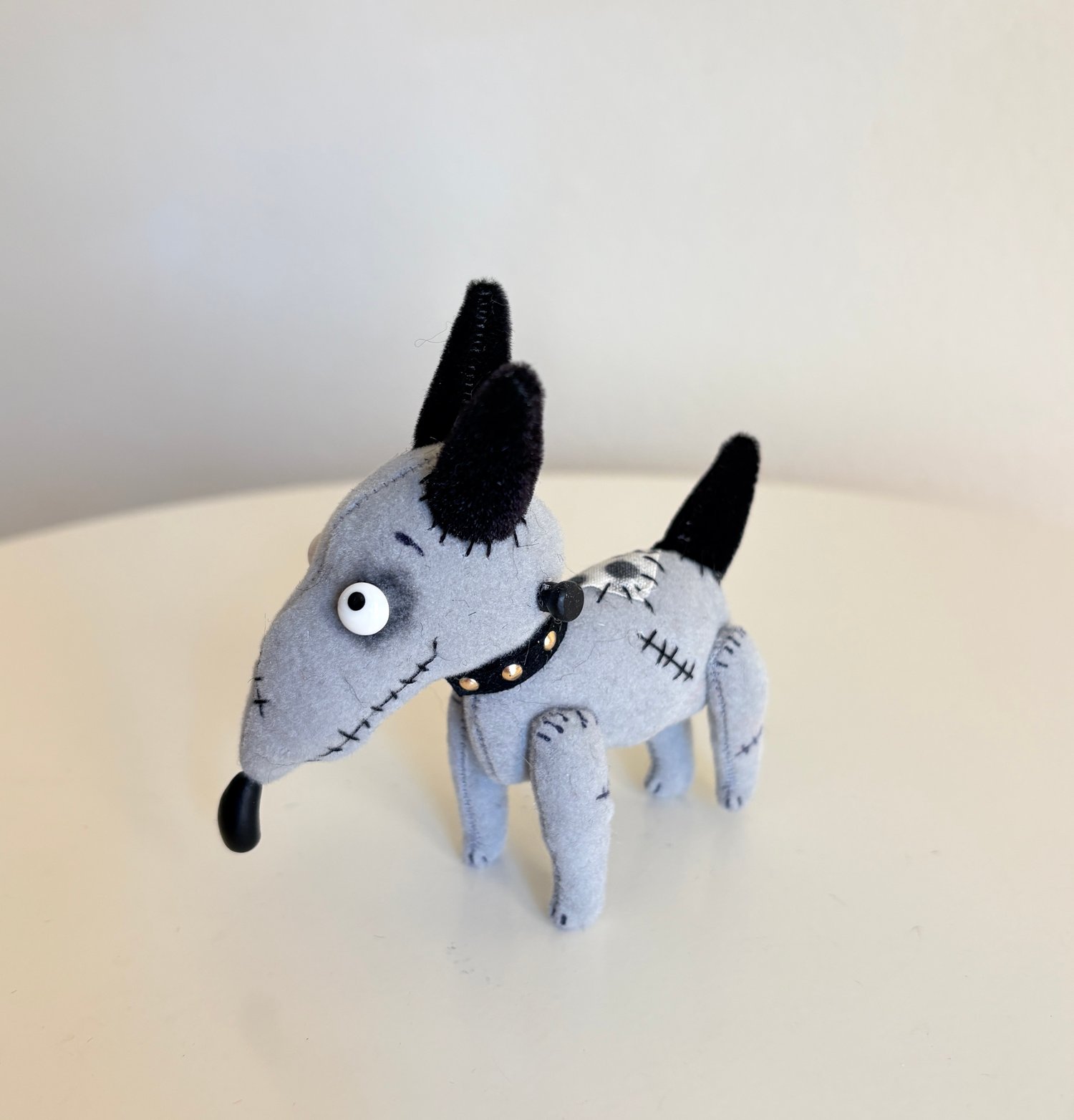 It's Sparky! The little Frankenstein pup...in grey velvet!