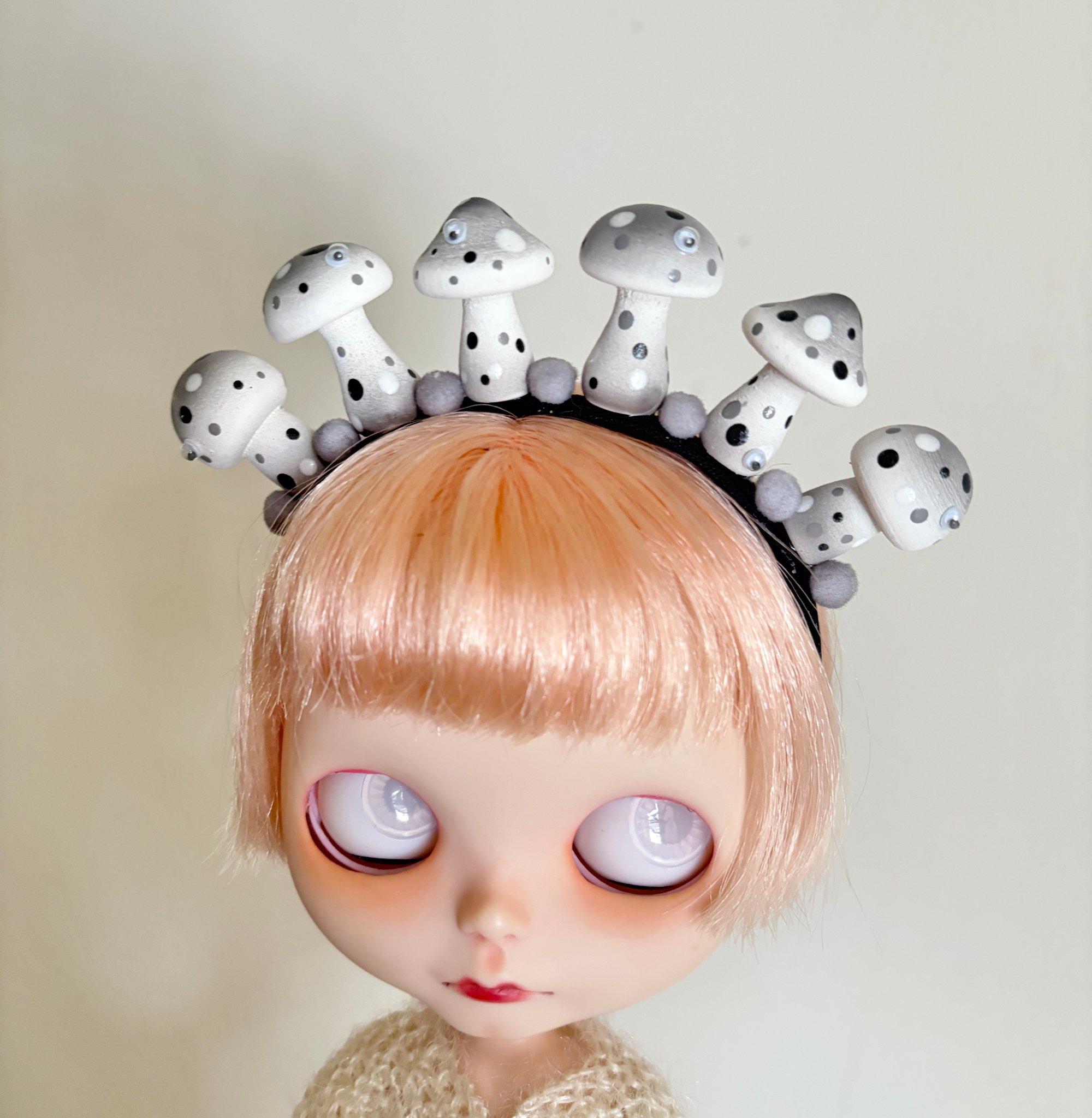 The band itself is custom shaped from flat wire, and then carefully covered with highest quality velvet ribbon. Effortlessly stays on Blythe's head without straps or ties.