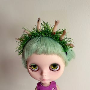 The band itself is custom shaped from flat wire, and then carefully covered with highest quality velvet ribbon. Effortlessly stays on Blythe's head without straps or ties.